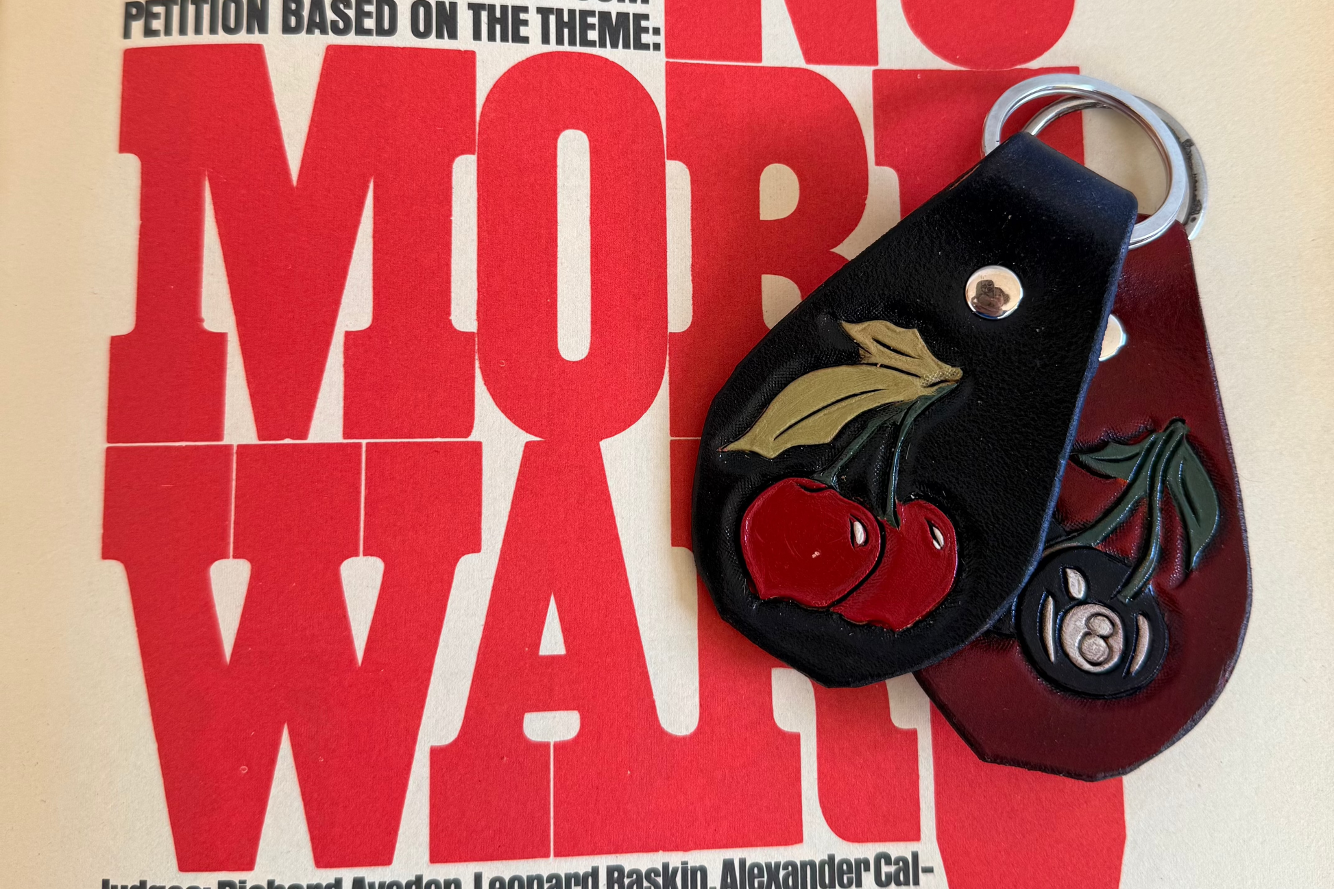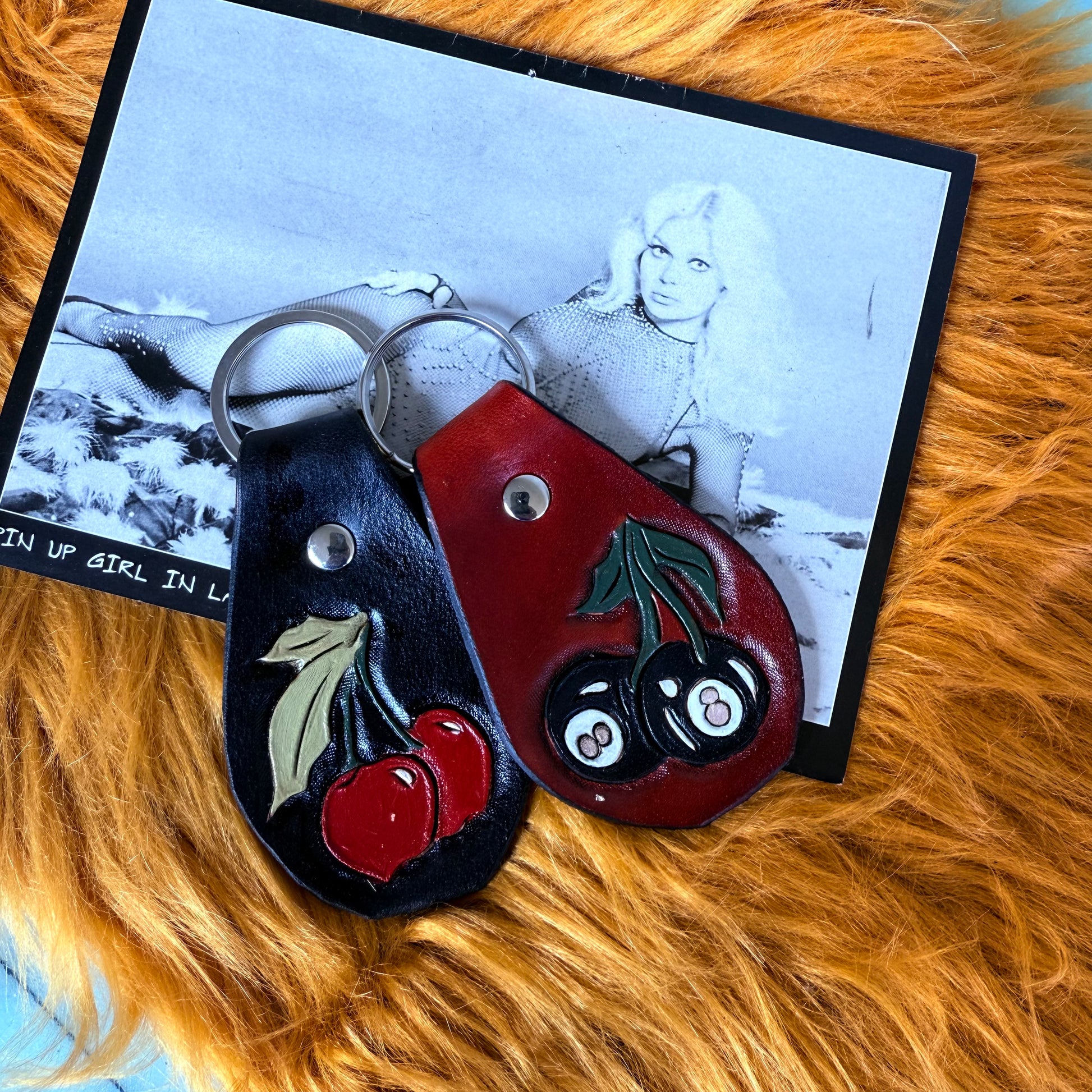 Exquisitely fashioned from reclaimed vegetable-tanned leather, this distinguished key ring showcases a meticulously hand-painted cherry or eight ball motif. Each piece represents our commitment to artisanal craftsmanship and sustainable luxury, transforming premium materials into heirloom accessories worthy of a second life.